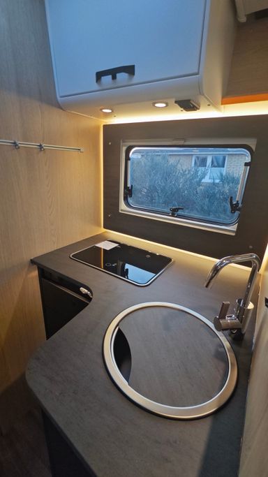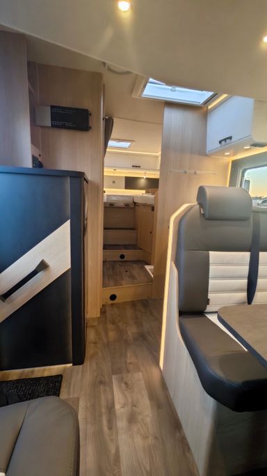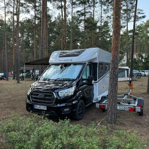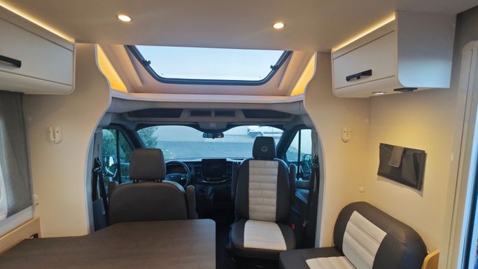Das Wohnmobil auf Ford-Transit-Basis mit 170 PS und Automatikgetriebe bietet modernes Design, viel Platz und hohen Fahrkomfort – ideal für Paare, Familien oder Freunde.